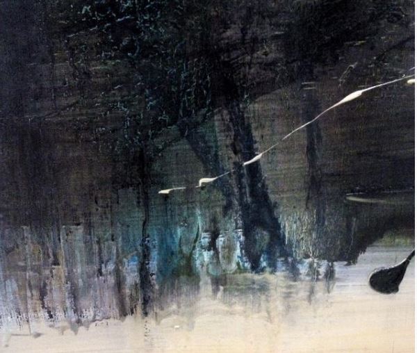 On peut y pressentir des troncs d’arbres échoués sur une plage, des algues flottant immédiatement sous la surface, des sous-bois, des paysages polaires, déserts, lunaires, des ruines sous un soleil de plomb des friches sous la neige à l’aube, des geysers ou bien rien de tout cela. La Nature est l’élément central de l’oeuvre de Zao Wou-Ki, suggérée serait plus juste.